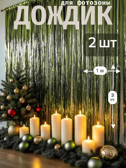 Дождик для фотозоны зеленый (Лайм) 3х1 м, 2 шт