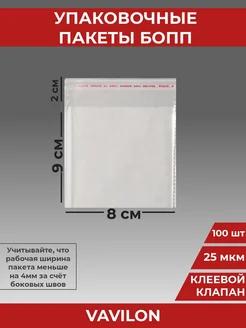 Упаковочные БОПП пакеты с клеевым клапаном, 8*9 см,100 шт