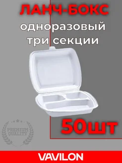 Ланч-бокс одноразовый, три секции, 50 шт, 250*195*68 мм