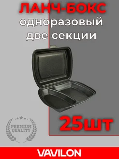Ланч-бокс одноразовый, две секции, черный, 25 шт