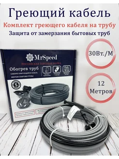 Готовый комплект греющего кабеля на трубу SRL-30 Вт м. 12м