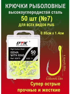Крючки рыболовные карповые с бородкой и ушком №7 50 шт