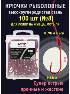Крючки рыболовные с длинным цевьем и насечками красные №8