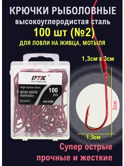 Крючки рыболовные с длинным цевьем и насечками красные №2