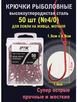 Крючки рыболовные с длинным цевьем и насечками красные №4 0