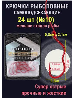 Крючки рыболовные с длинным цевьем и насечками красные №10
