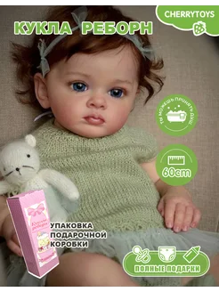 Кукла реборн 65 см, девочка, тканевое тело,голубые глаза