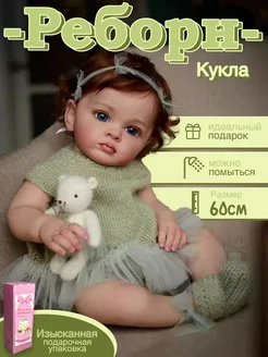 Реборн-кукла 60 см девочка, моющаяся,голубые глаза