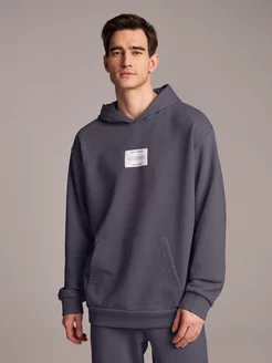 Худи мужское из футера трехнитка с принтом-нашивкой