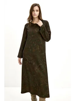 Длинное платье с шерстью А-силуэта орнамент цветочный