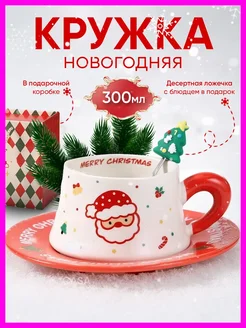 Новогодняя кружка для чая и кофе с блюдцем 250 мл подарок