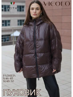 Пуховик зимний короткий стильный с капюшоном оверсайз