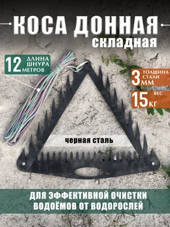 Донная коса для водорослей рыболовная 3 мм черная сталь