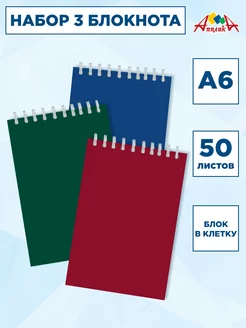 Блокнот на кольцах А6, 50 листов, клетка, 3 штуки