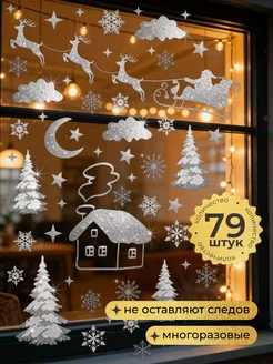 Новогодние наклейки на окна декор для комнаты 2026, 79 шт