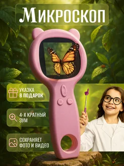 Микроскоп детский карманный с камерой и подсветкой лупа