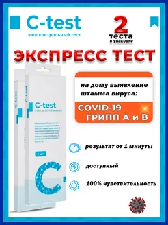 на ковид COVID-19, Грипп А, В С-test, 2 шт