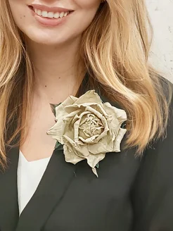 Чокер - брошь цветок из натуральной кожи жемчуг