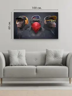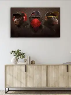 Картина на холсте 60х100 см 3 обезьяны бюст