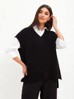 Жилет вязаный трикотажный безрукавка школьная с разрезами