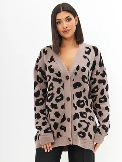 Кардиган удлиненный на пуговицах леопардовый оверсайз