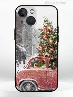 Чехол на iPHONE 13 mini с принтом новогодний car spruce