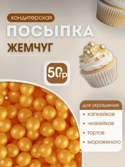 Кондитерская посыпка жемчуг шарики золотой 6 мм мягкая