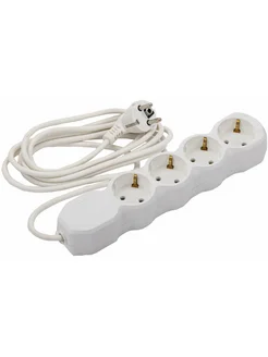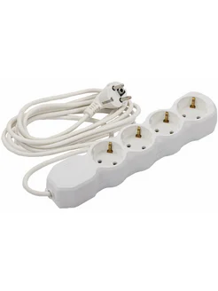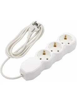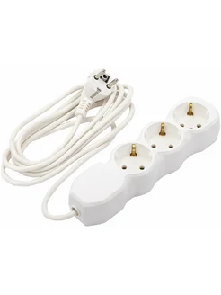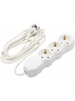 Удлинитель, 3 розетки с заземлением, 10 А, 5 м белый