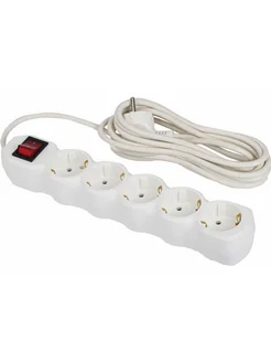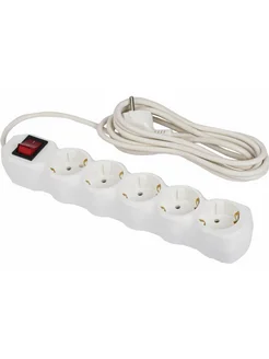Сетевой фильтр, 5 розеток с заземлением, 10 А, 3 м белый