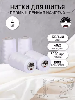 Нитки полиэстер 40 2 промышленные 4570 м, 4 шт, белые