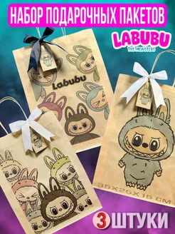 Подарочный бумажный пакет Лабубу набор 3 шт