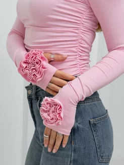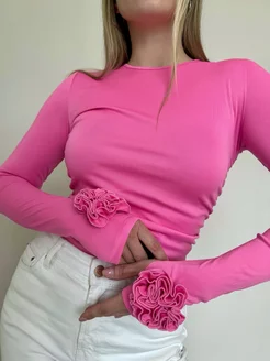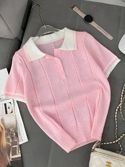 Розовая рубашка-поло женская с пуговицами, короткий рукав
