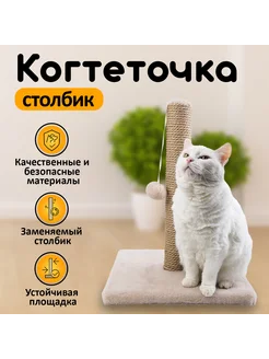Когтеточка столбик с игрушкой для кошек 48х35х35 см