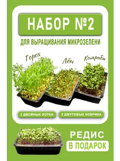 Набор для выращивания микрозелени 2 (Горох, Кольраби, Лён)