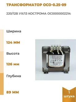Трансформатор ОСО-0.25-09 220 12В УХЛ3 Кострома