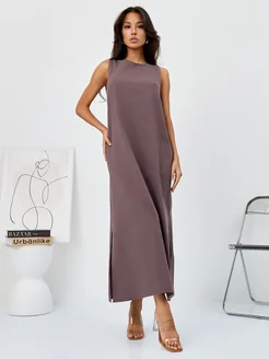 Длинное модное платье A-силуэта из льна