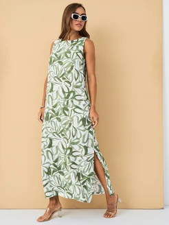 Длинное модное платье A-силуэта из льна креш