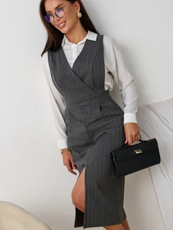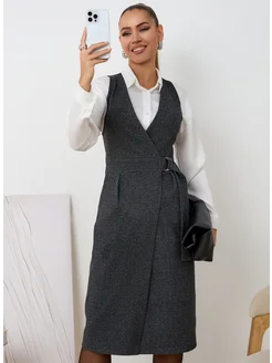Теплый офисный сарафан на запах под блузку