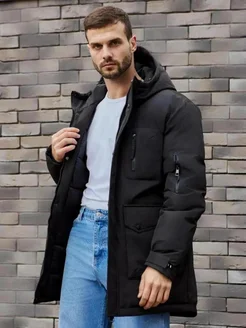 Зимняя удлинённая куртка с капюшоном