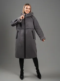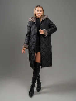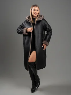 Дубленка двухсторонняя из эко меха с капюшоном