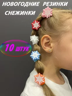 Резинки для волос новогодние детские набор снежинки