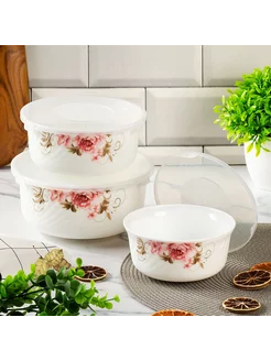 Салатники стеклокерамика, набор, круглые, с крышками, 3 шт