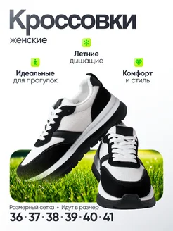 Кроссовки легкие дышащие на высокой платформе черные белые