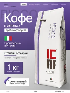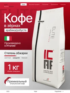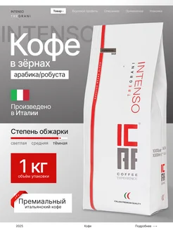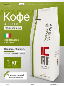 Кофе в зёрнах арабика 1 кг Икаф 100% Arabica