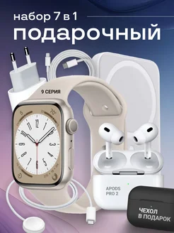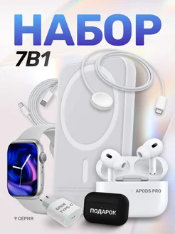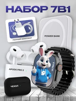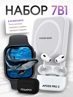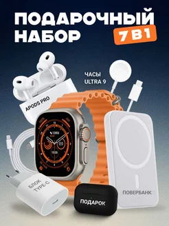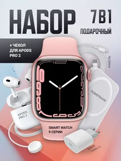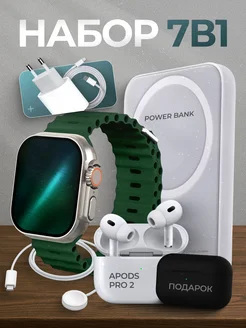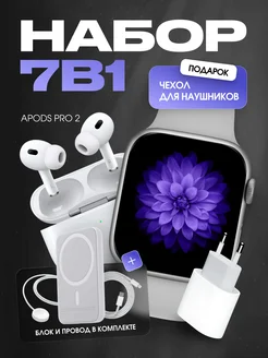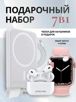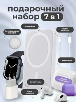 Умные смарт часы в подарочном наборе 7 в 1 с наушниками