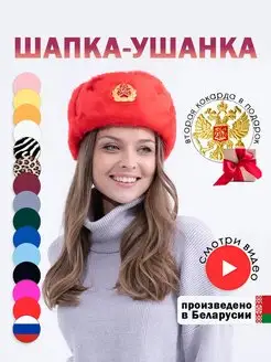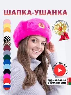 Шапка-ушанка армейская зимняя с кокардой фуксия