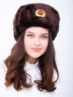 Шапка-ушанка армейская зимняя с кокардой темно-коричневая