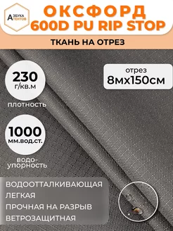 Ткань для шитья Оксфорд 600D RIP STOP, отрез 150х8м, серый