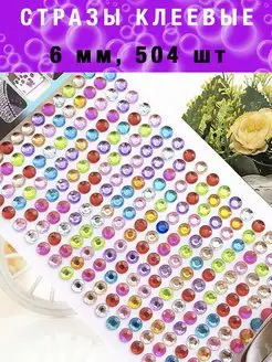 Стразы 6 мм 504 шт. круглые клеевые для творчества рукоделия