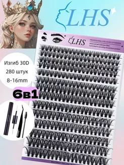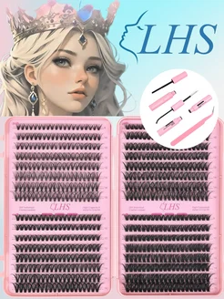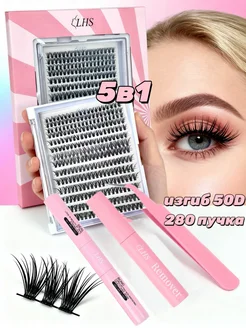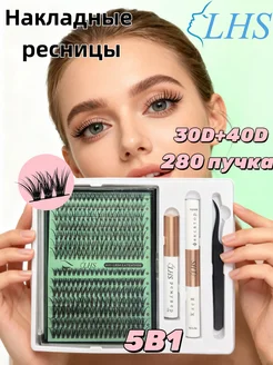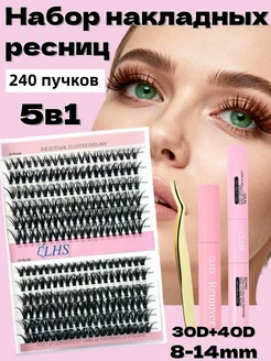 Набор пучковых накладных ресниц с клеем изгиб D, 30D 40D